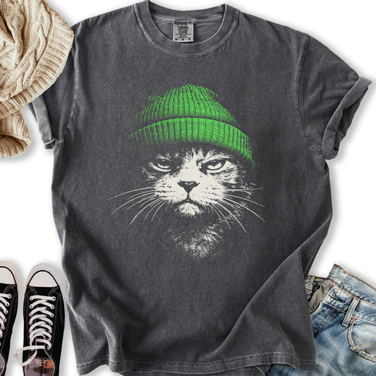 Green Beanie Cat T-Shirt