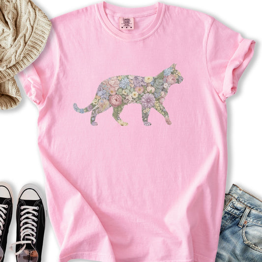 Pastel Floral Cat T-shirt